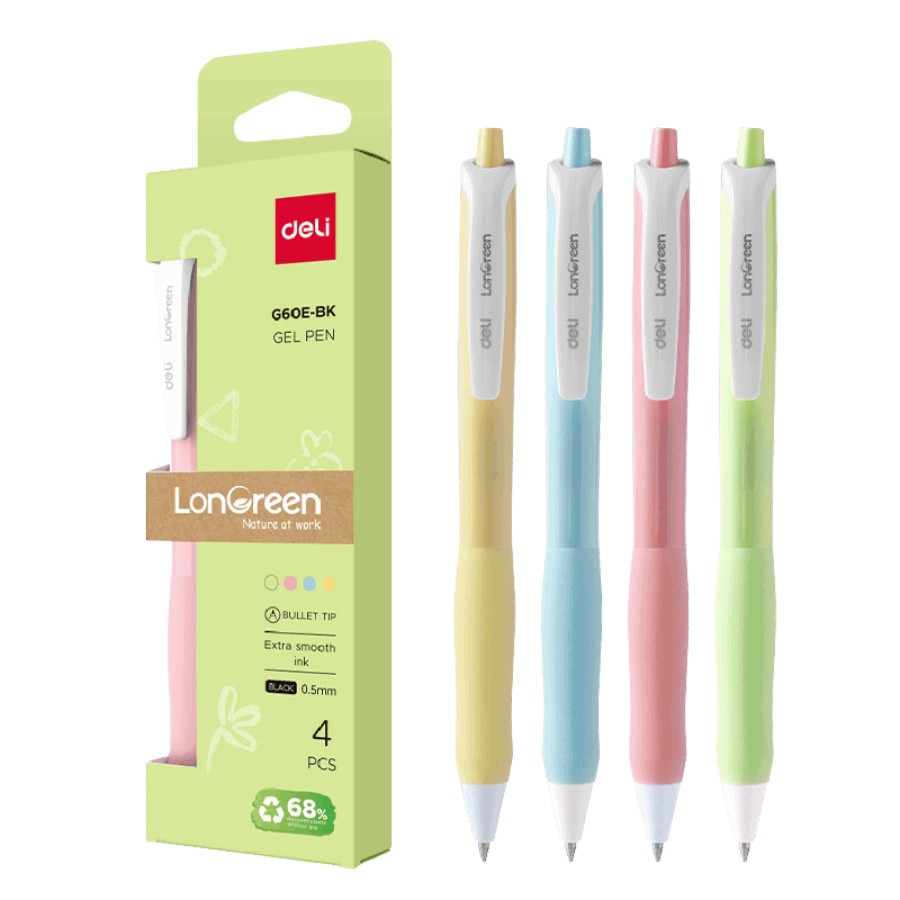 Długopisy żelowe Deli EG60E-BL, LonGreen, wkł.czar