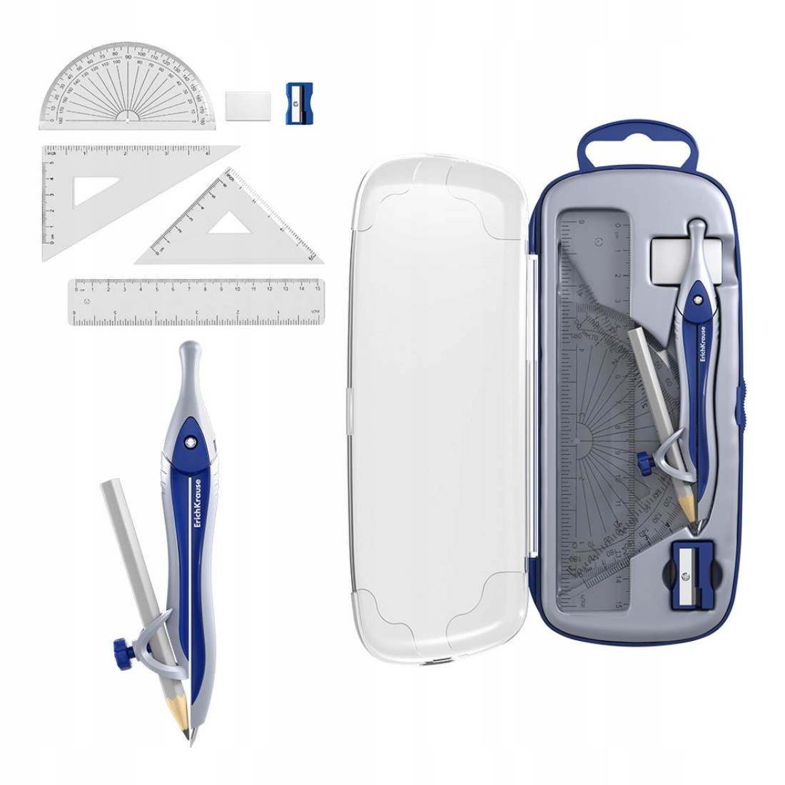 Cyrkiel + zestaw geometr.7el.granatowy ErichKrause