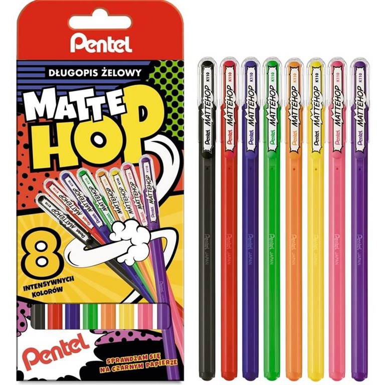 Długopisy żelowe w żywych, wyrazistych kolorach.