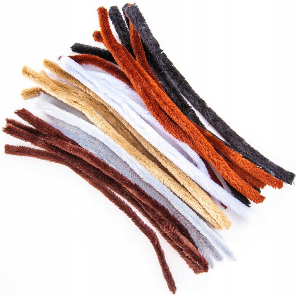Grube, puszyste druciki kreatywne w naturalnych kolorach przypominających sierść zwierząt. Doskonałe do wszelkiego rodzaju dziecięcej aktywności twórczej. Niezwykle elastyczne, świetnie sprawdzają się podczas tworzenia postaci zwierząt oraz innych kreacji.