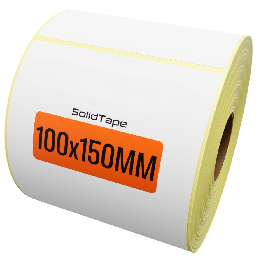Etykiety termiczne o rozmiarze 100x150 mm stosowane do druku etykiet nadawczych kurierskich, paczkomatowych itp.
