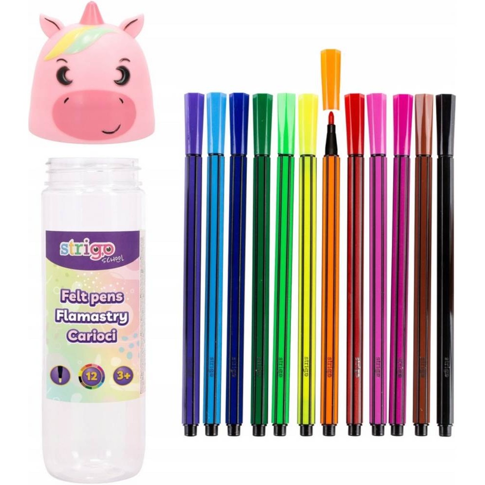Ten zestaw kolorowych flamastrów Strigo Jednorożec jest idealny dla dzieci i pasjonatów malowania i kolorowania.