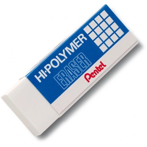 Bardzo popularna na całym świecie gumka ołówkowa Hi-Polymer. Wyjątkowo giętka i miękka, działa bez potrzeby mocnego dociskania do powierzchni. Nie narusza struktury papieru, pozostawia zeszyty, dokumenty oraz notatki w doskonałym stanie. Nie pęka, nie twardnieje, nie brudzi się. Pozostawia małą ilość ścinek. Nie zawiera szkodliwych substancji. Jest bezpieczna dla dzieci.