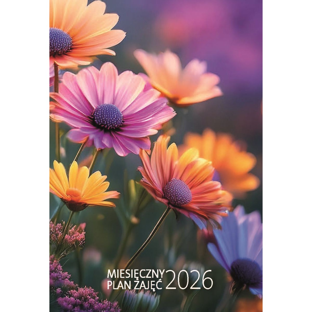 Zeszytowy kalendarz z panoramicznym kalendarium na każdy miesiąc, do notowania codziennych, ważnych spraw i spotkań.