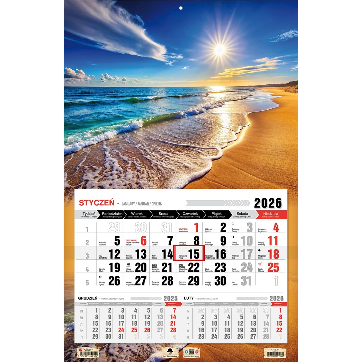 Kalendarz 2026 Trójdzielny JEDNODZIELNY 3XL.