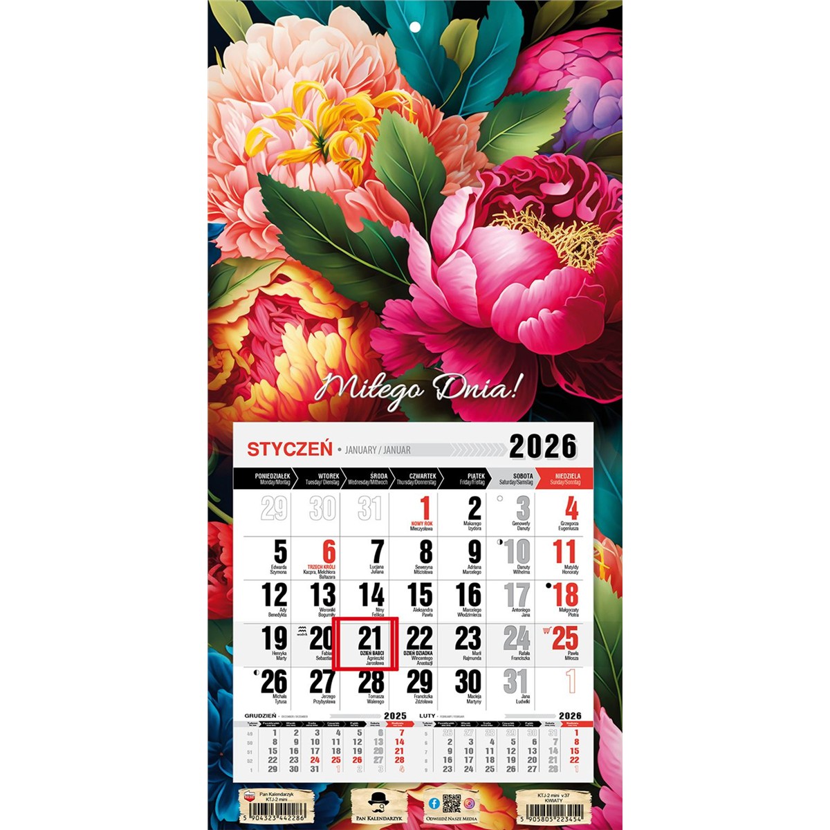 Strona główna » Terminarze / Kalendarze 2026 » Kalendarze ścienne » Kalendarz jednodzielny MINI KTJ-2 Pan Kalendarzyk