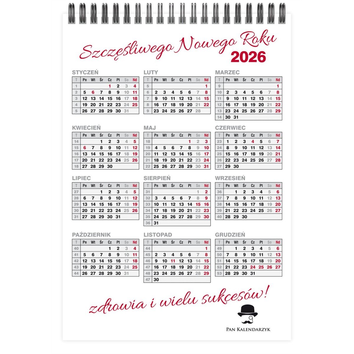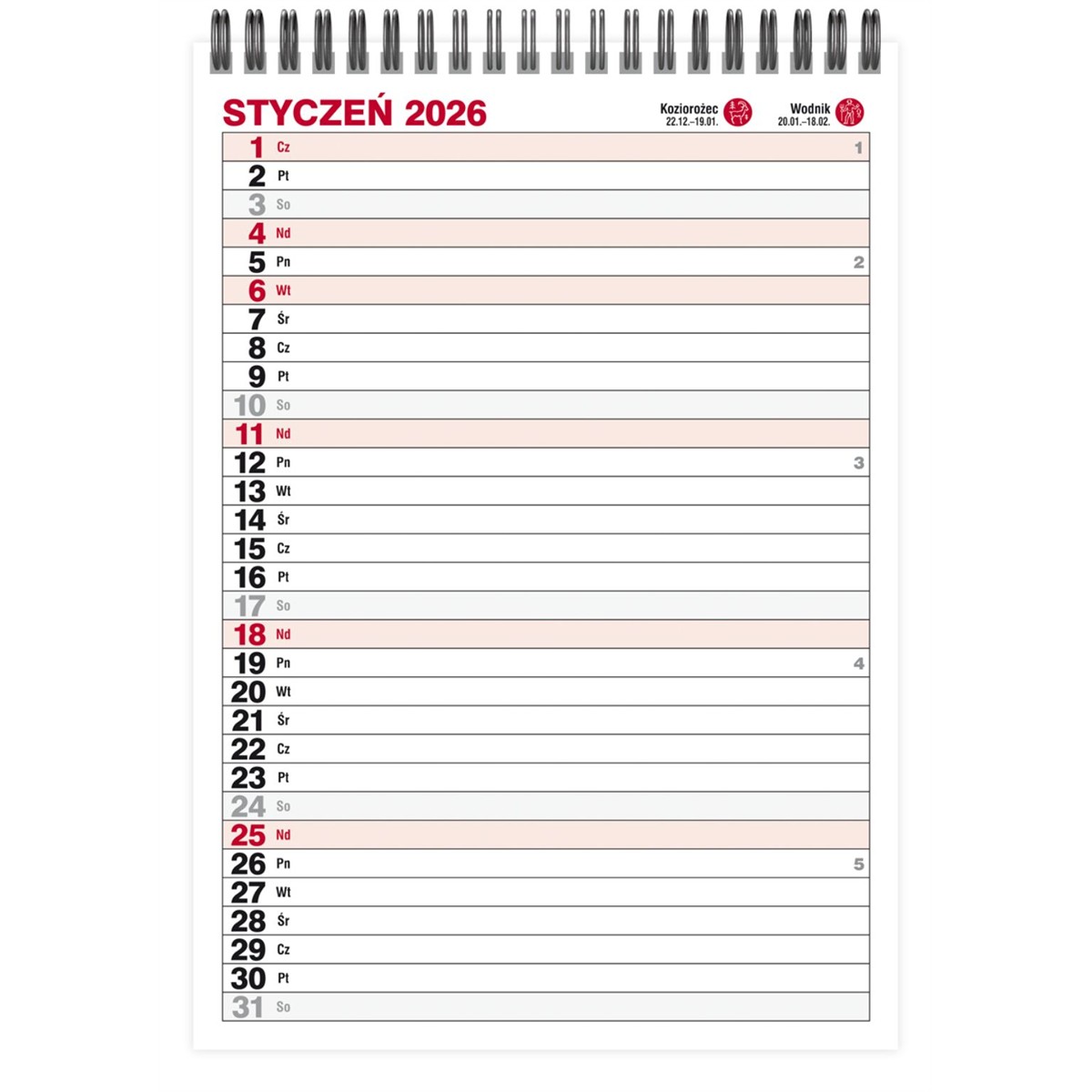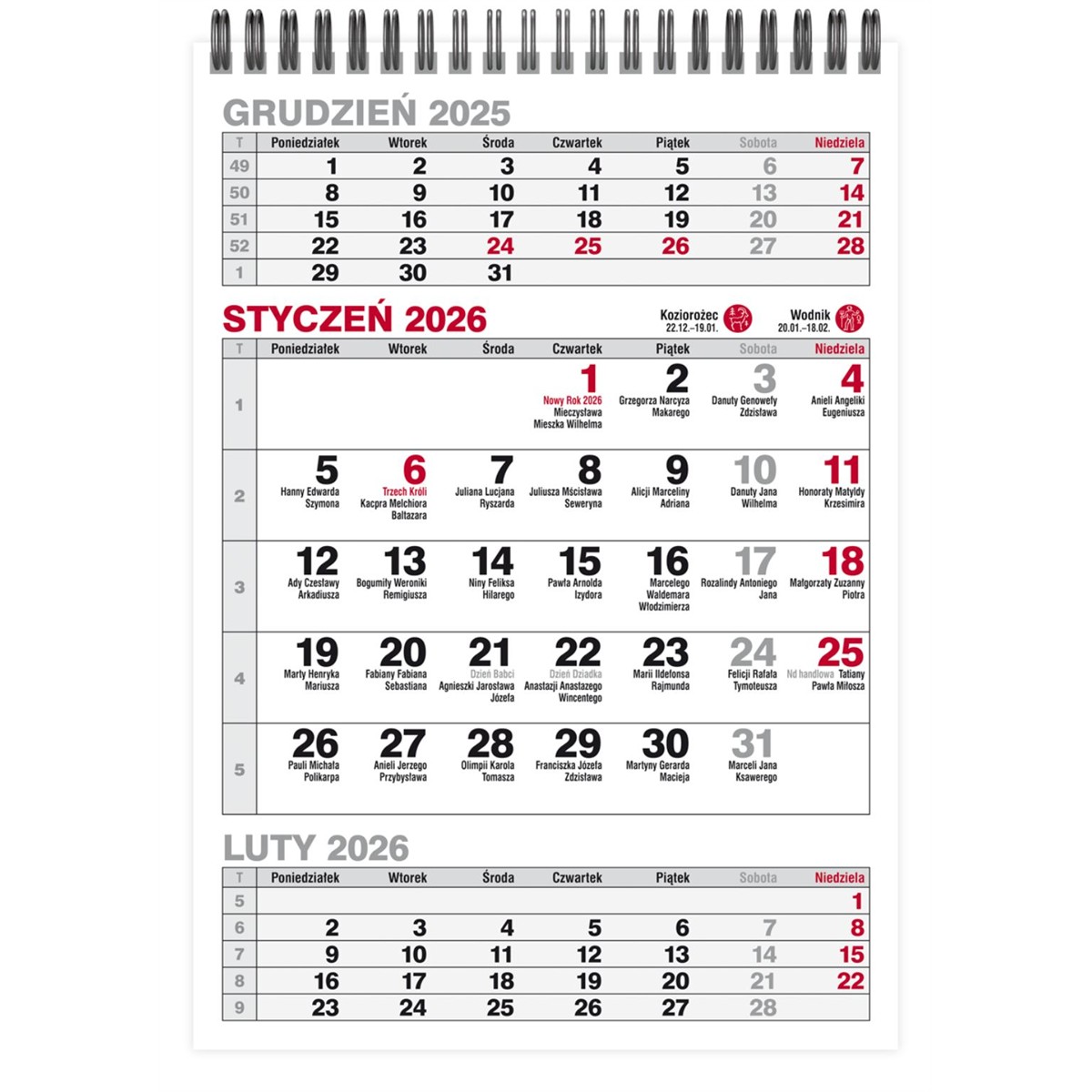 Kalendarz biurkowy trójdzielny pionowy 2026