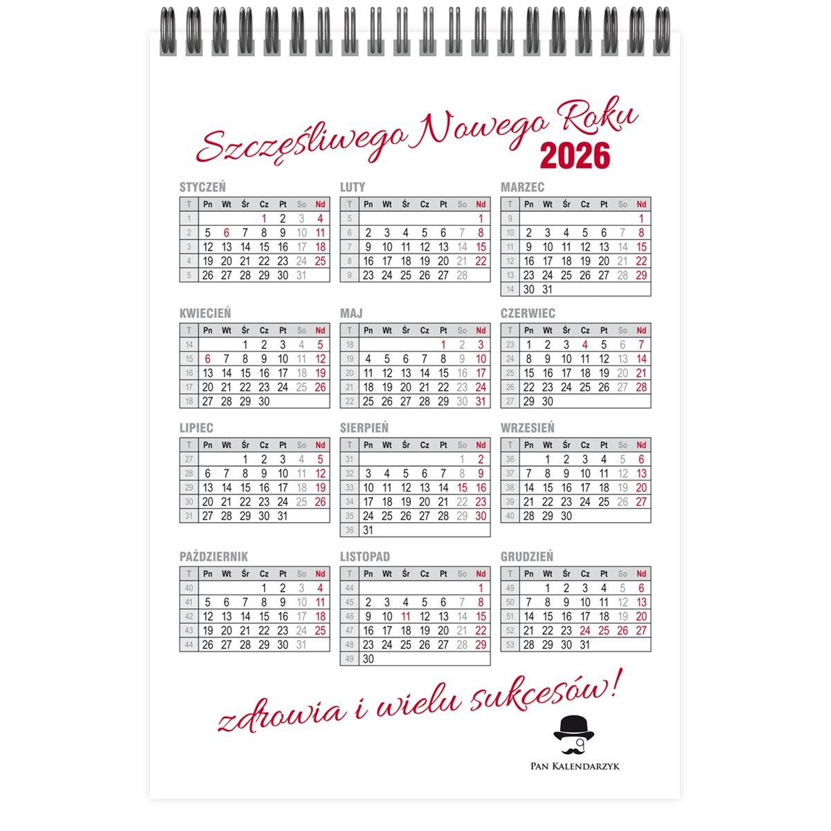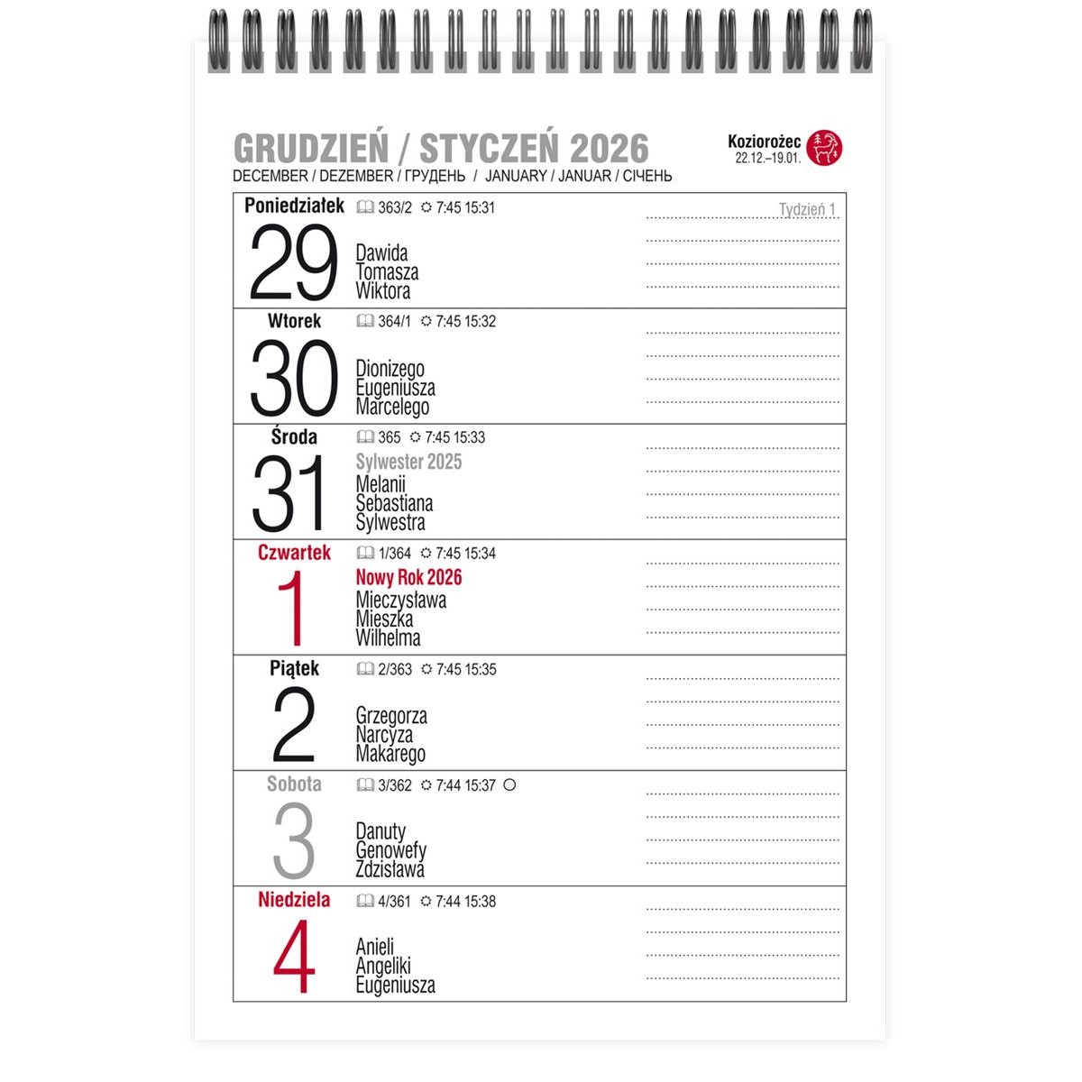 Kalendarz 2026 Biurkowy A5 TYGODNIOWY PIONOWY MINI.