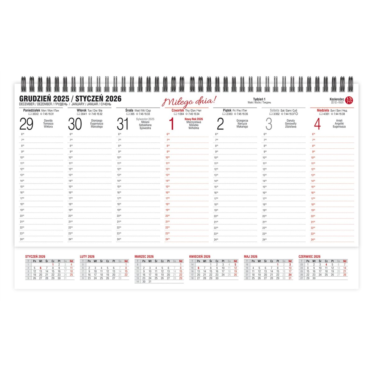 Kalendarz 2026 Biurkowy POPRZECZNY TYGODNIOWY.