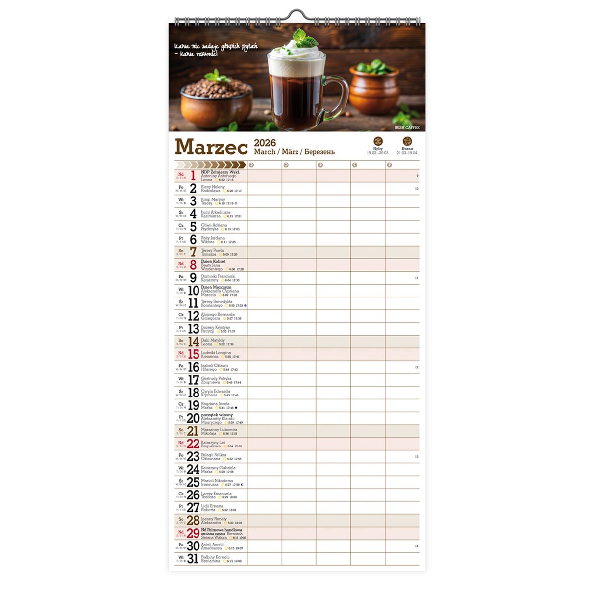 Kalendarz ŚCIENNY PASKOWY SZEROKI drukowany jednostronnie 2026