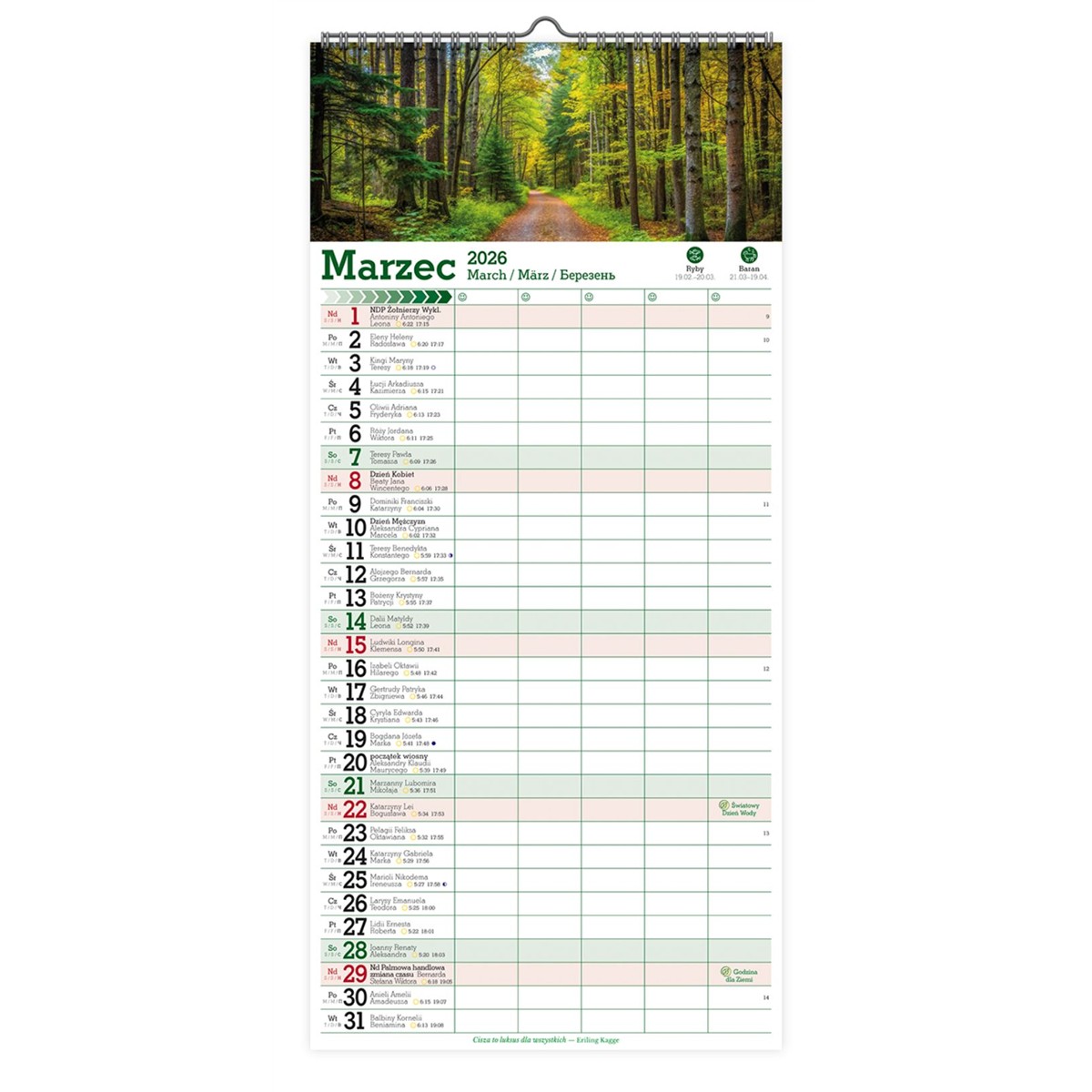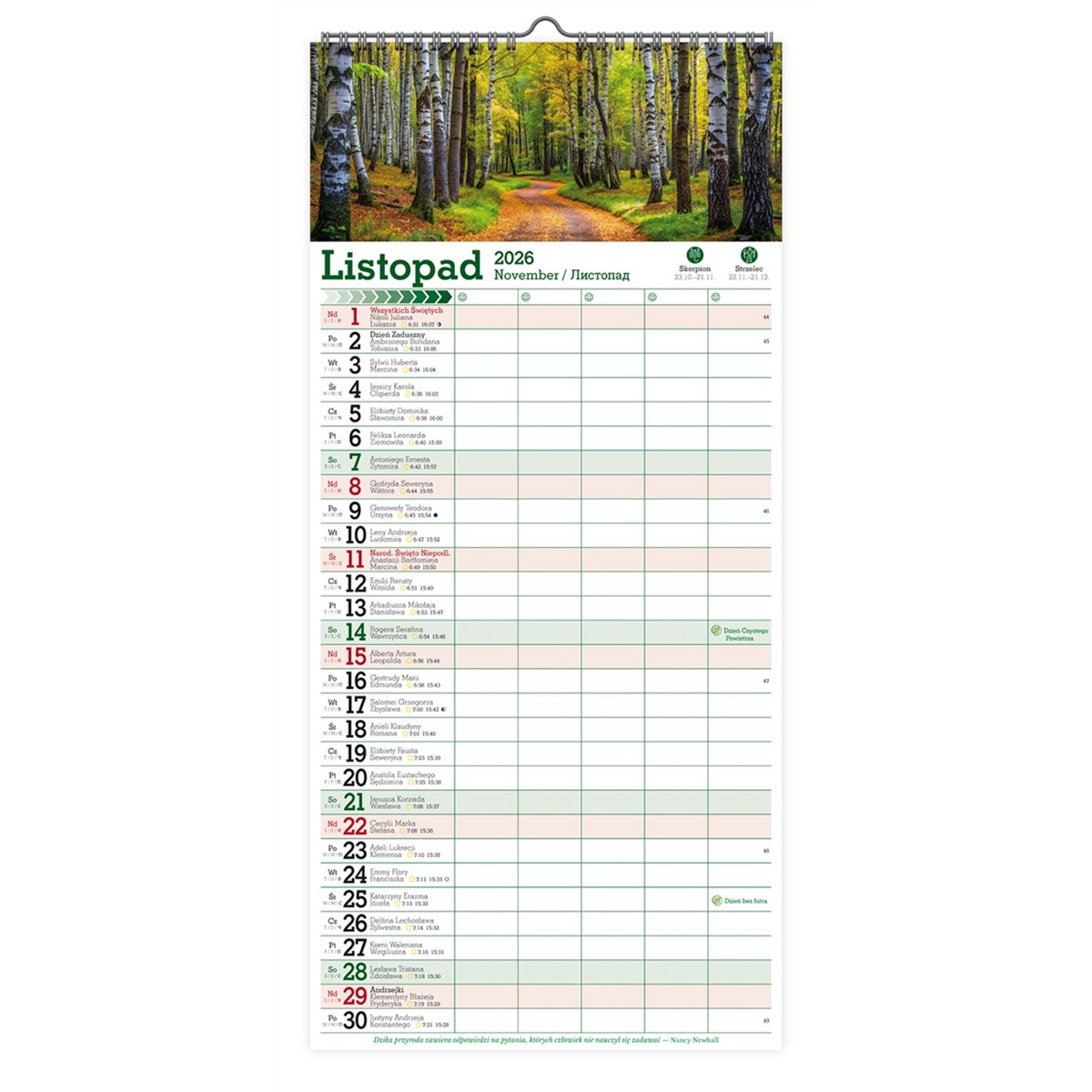 Kalendarz ŚCIENNY PASKOWY SZEROKI drukowany jednostronnie 2026