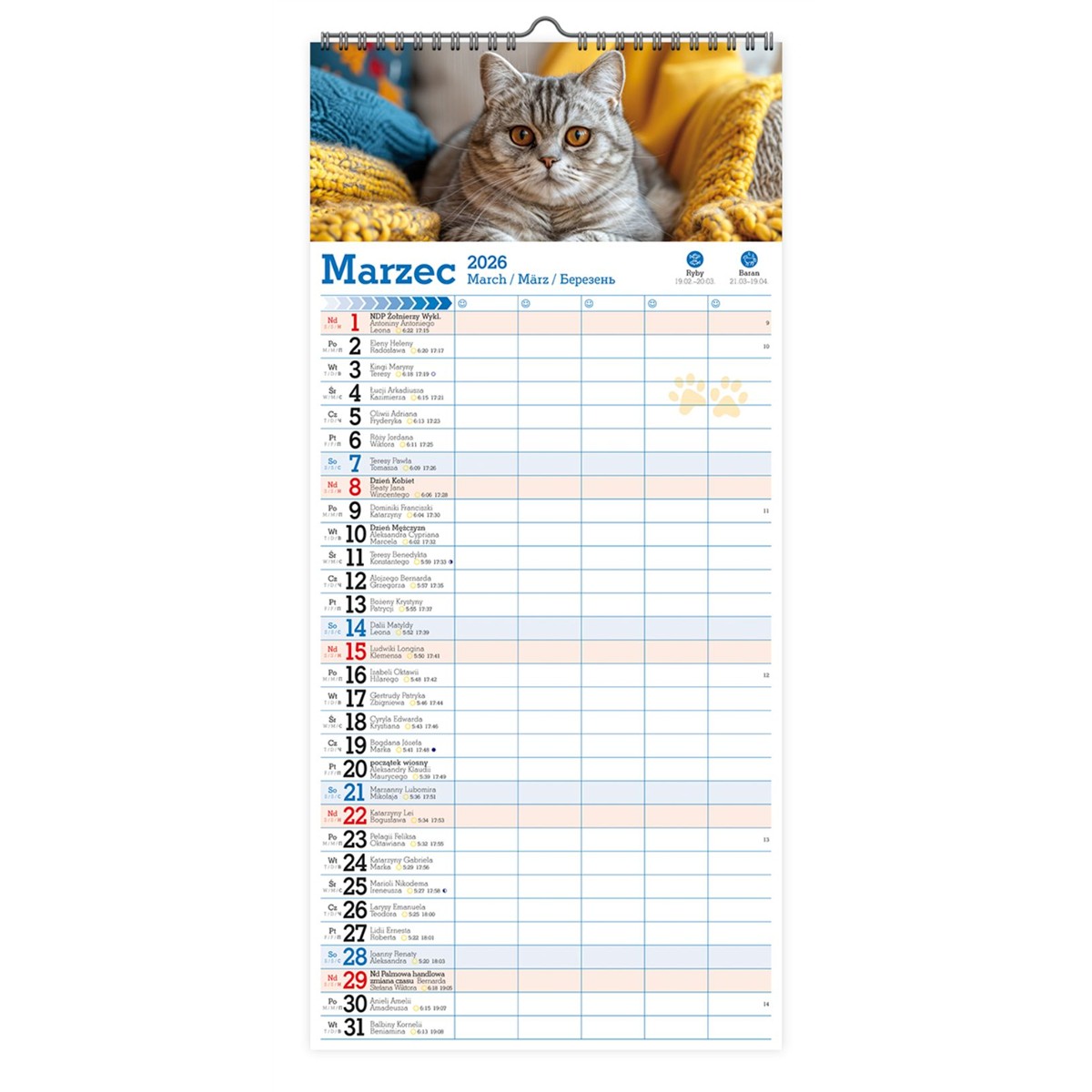 Kalendarz paskowy szeroki KPS v.6 Pan Kalendarzyk-45142