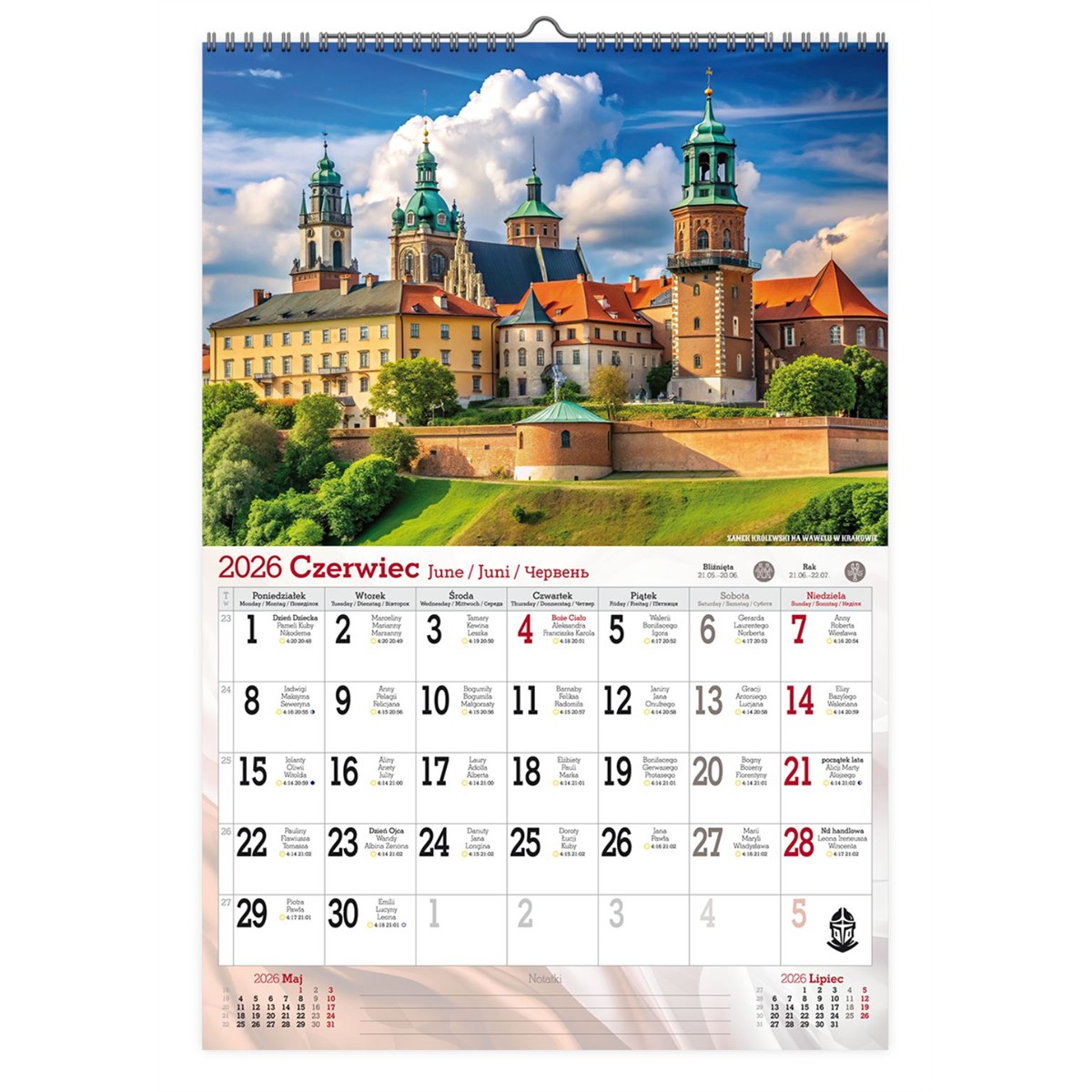 • Duże czytelne kalendarium z miejscem na notatki, duża czytelna czcionka.