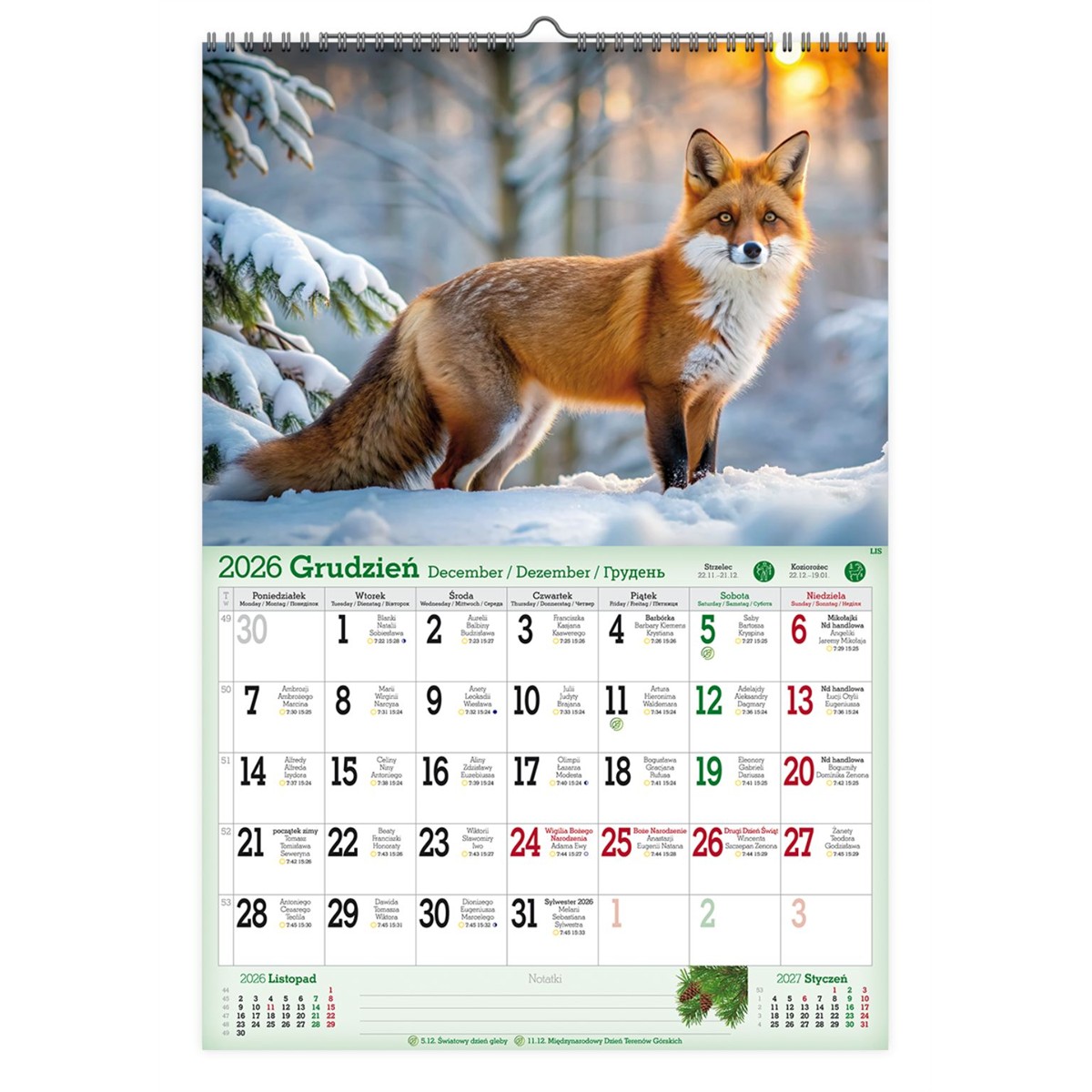 • Duże czytelne kalendarium z miejscem na notatki, duża czytelna czcionka.