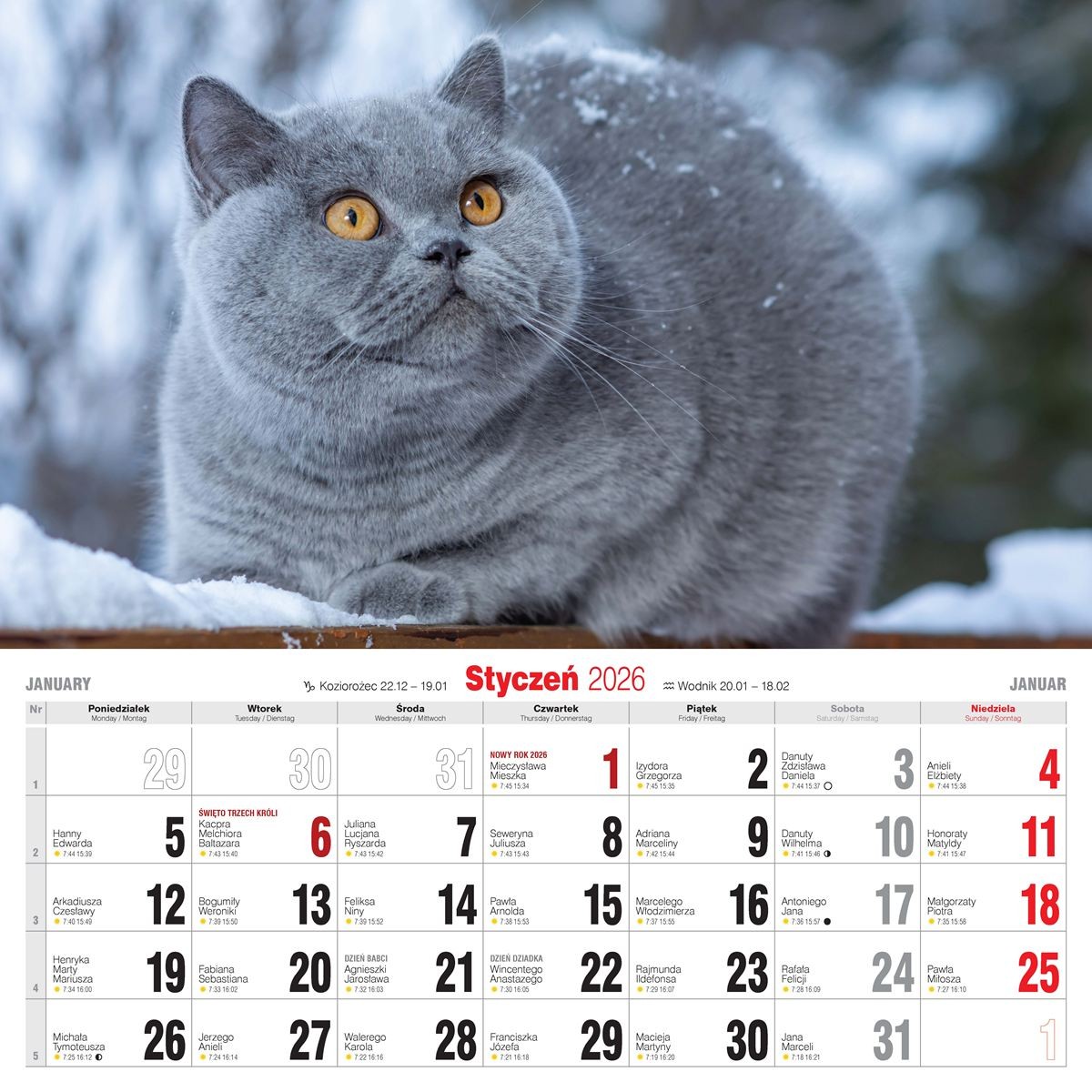 Duży, solidny kalendarz ścienny, drukowany na papierze kredowym.