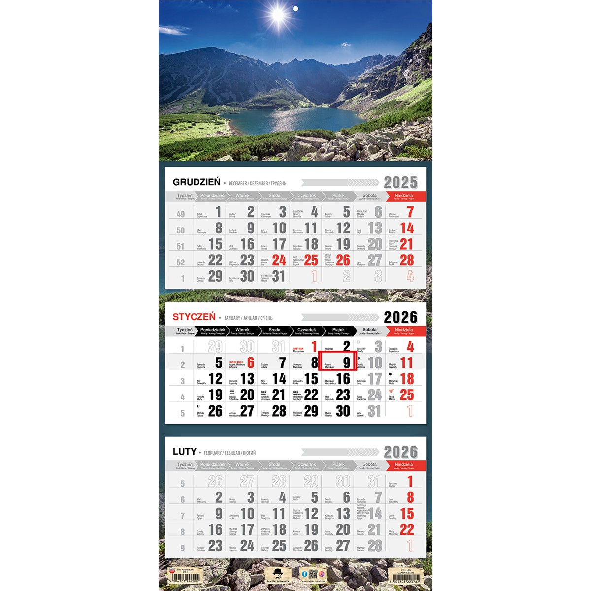 • Kalendarz oryginalnie pakowany w folię