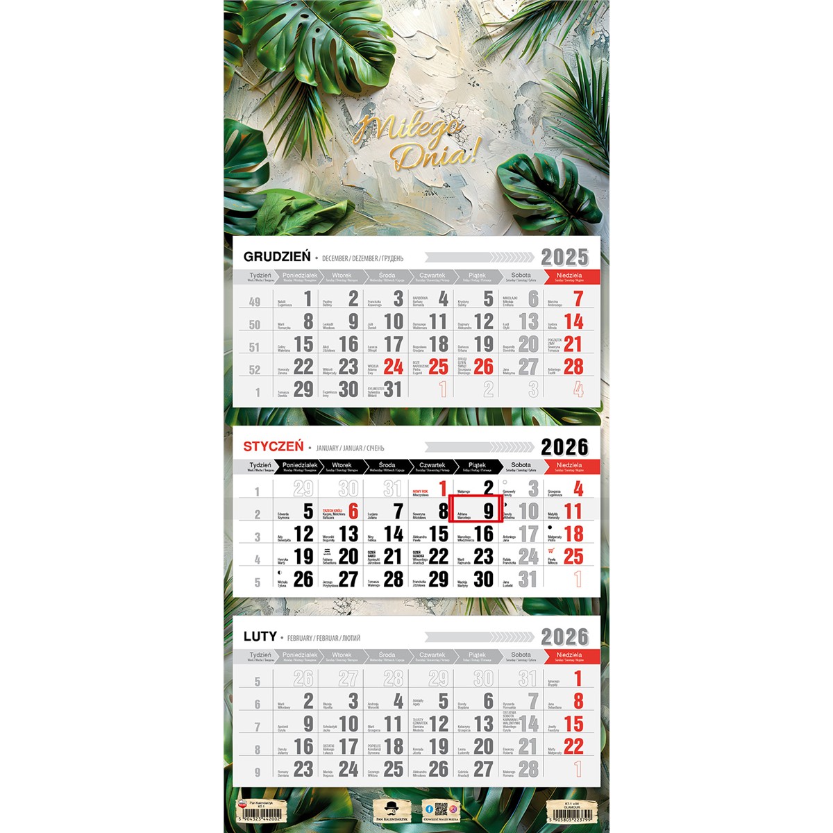 • Kalendarz oryginalnie pakowany w folię