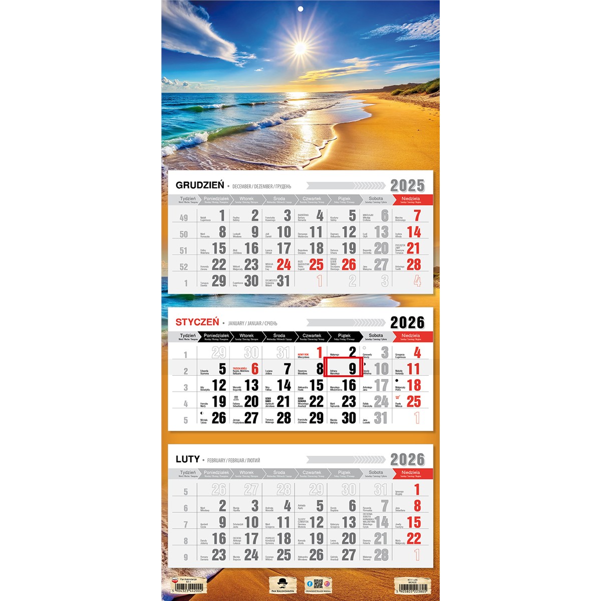 • Kalendarz oryginalnie pakowany w folię