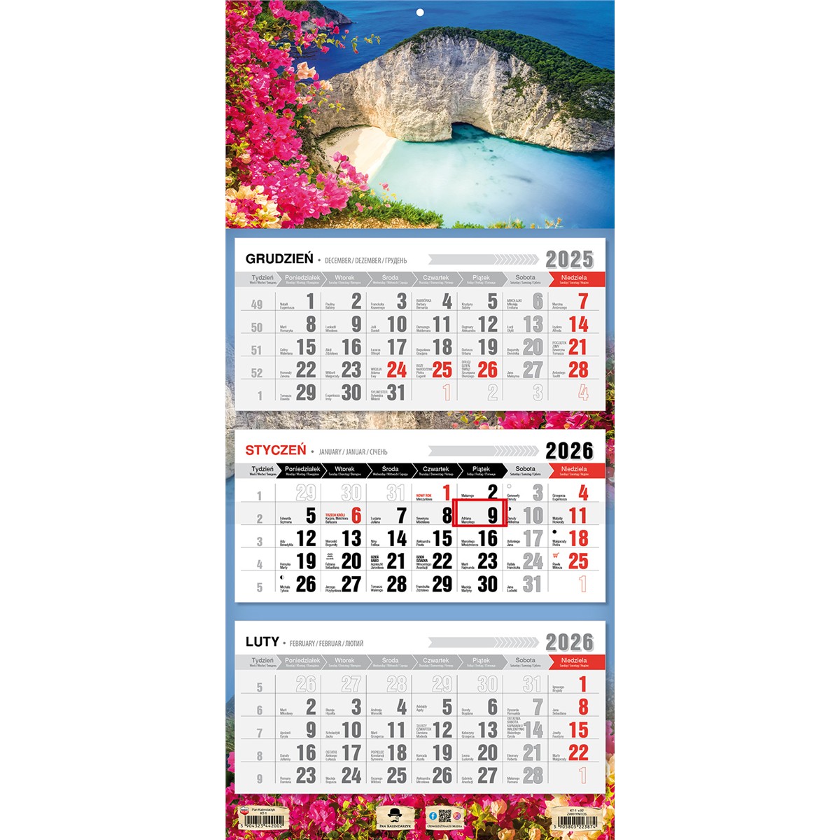 • Kalendarz oryginalnie pakowany w folię