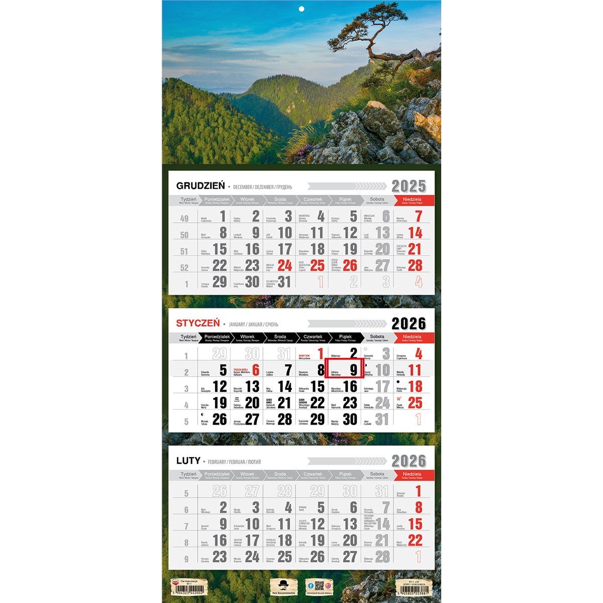 • Kalendarz oryginalnie pakowany w folię