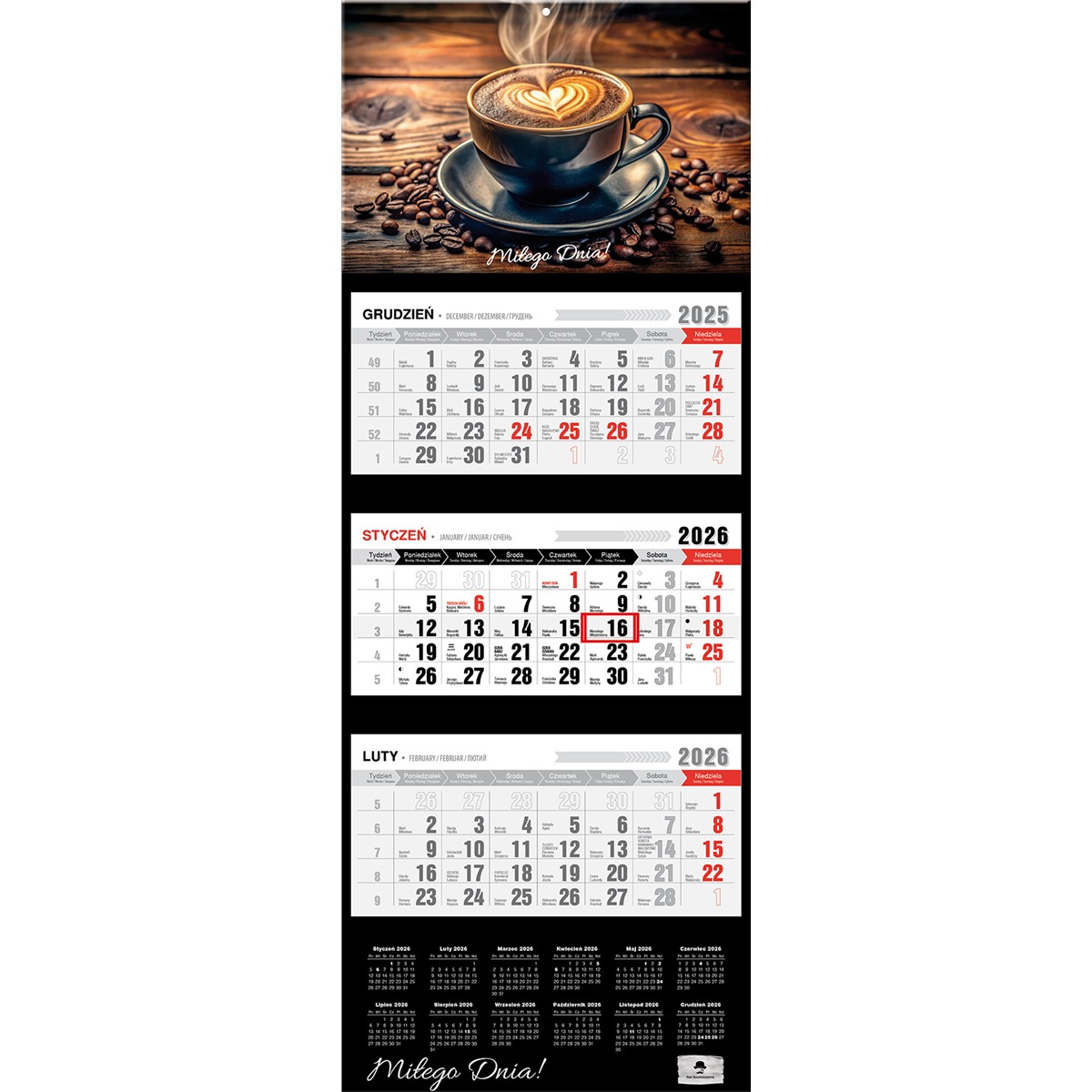 • Kalendarz oryginalnie pakowany w folię