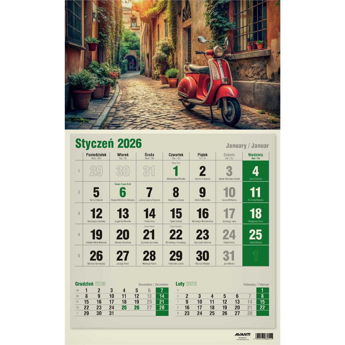 Kalendarz jednodzielny trzymiesięczny AVANTI KTJ-ECO.