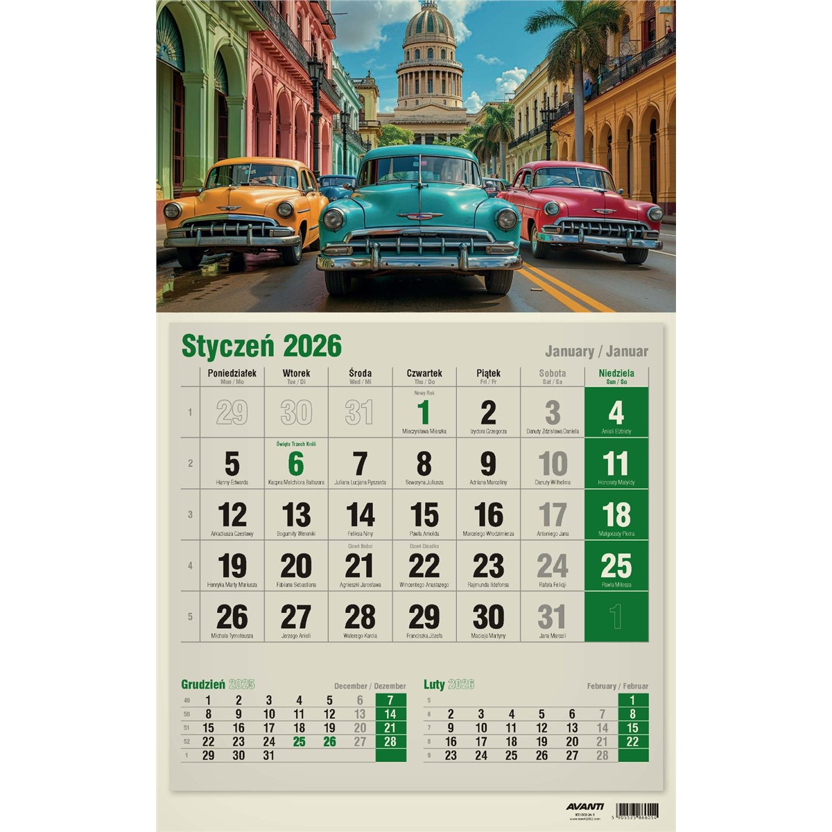 Kalendarz jednodzielny trzymiesięczny AVANTI KTJ-ECO.