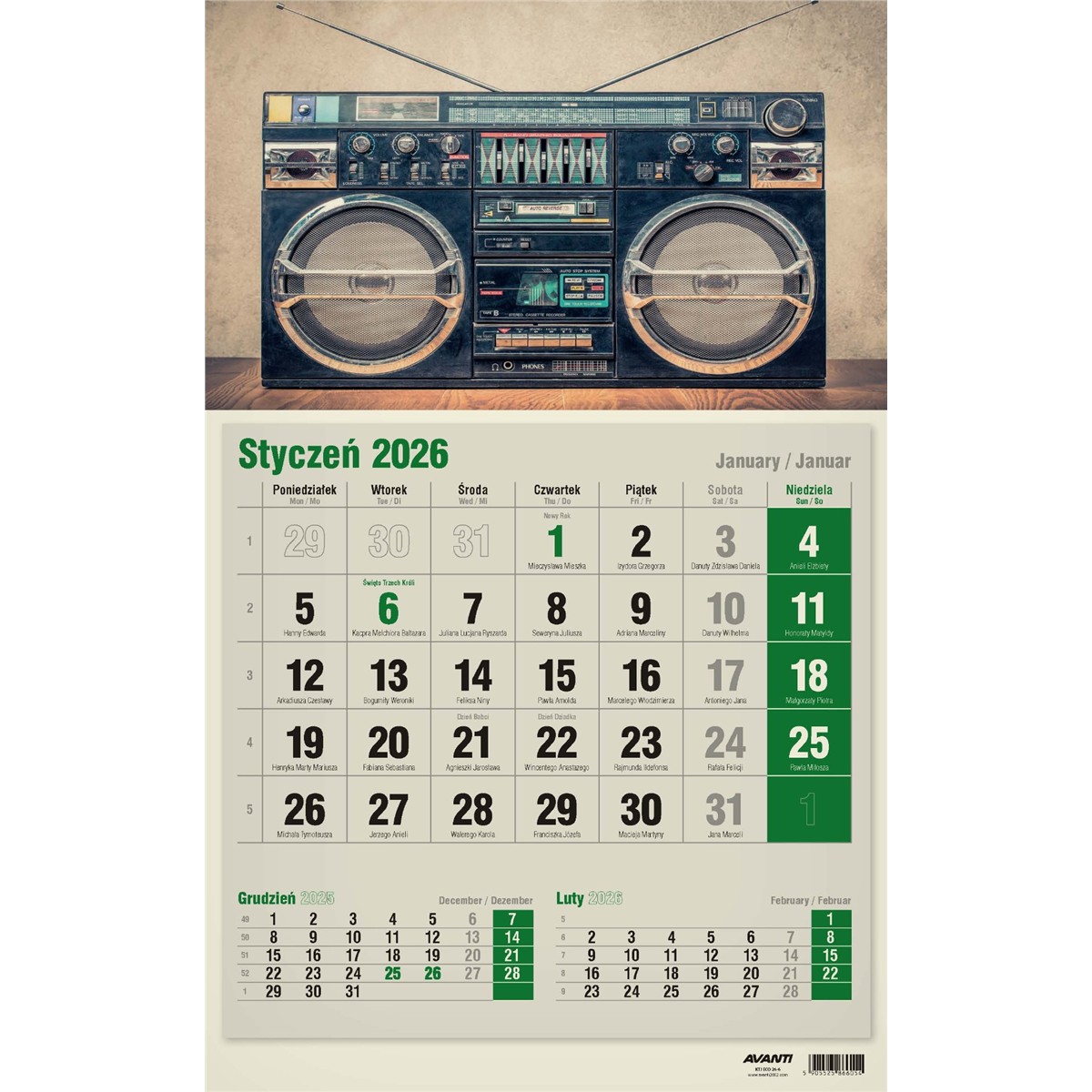 Kalendarz jednodzielny trzymiesięczny AVANTI KTJ-ECO.