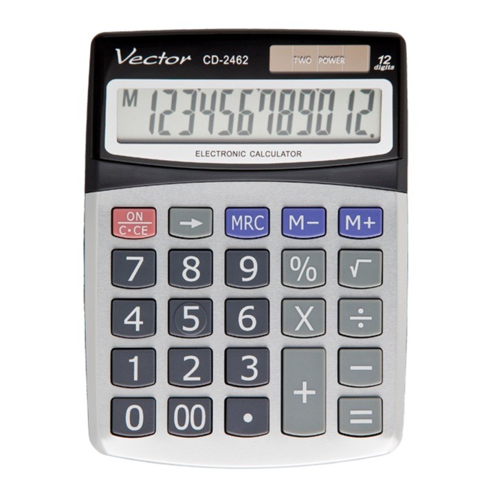 Vector CD-2462 to bardzo popularny kalkulator z 12 pozycyjnym wyświetlaczem.