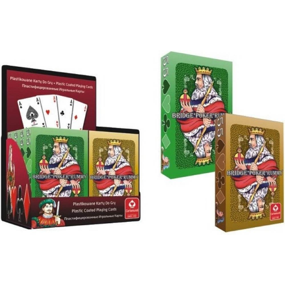 Karty do gry z ponadczasowym wzornictwem. Pudełko zawiera 52 karty do gry + 3 Jokery w formacie 56x87mm. Dwie talie.