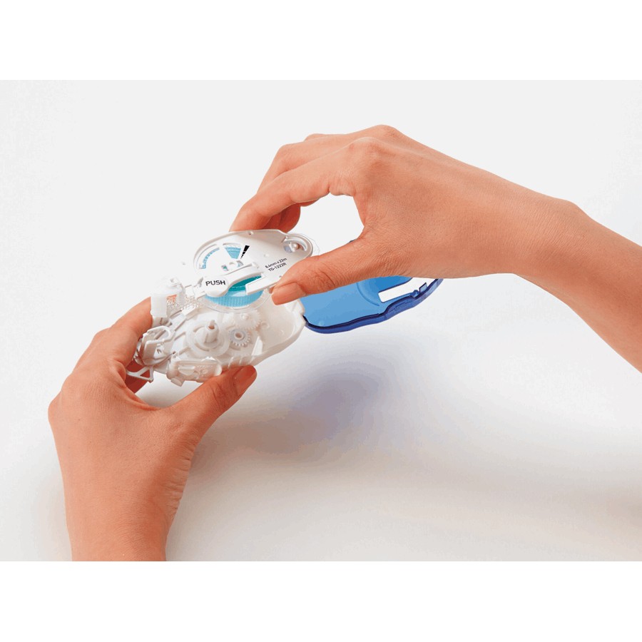 Permanentny klej w taśmie charakteryzujący się świetnymi parametrami klejącymi oraz czystą i precyzyjną aplikacją. Klej lekko zabarwiony na niebiesko wskazuje miejsca klejenia, ułatwiając precyzyjne zastosowanie. System naciągu zapobiega zacinaniu taśmy. Wyposażony w osłonkę na taśmę otwieraną za pomocą przycisku - umożliwia użytkowanie kleju jedną ręką. Posiada okienko ułatwiające równe klejenie wzdłuż krawędzi. Wałek wewnątrz obudowy usuwa resztki kleju, utrzymując taśmę w czystości. Produkt proekologiczny, elementy plastikowe wyprodukowane w 95% z materiałów z recyclingu. Wymiary taśmy: 8,4 mm x 20 m. Wygodna wymiana wkładu.