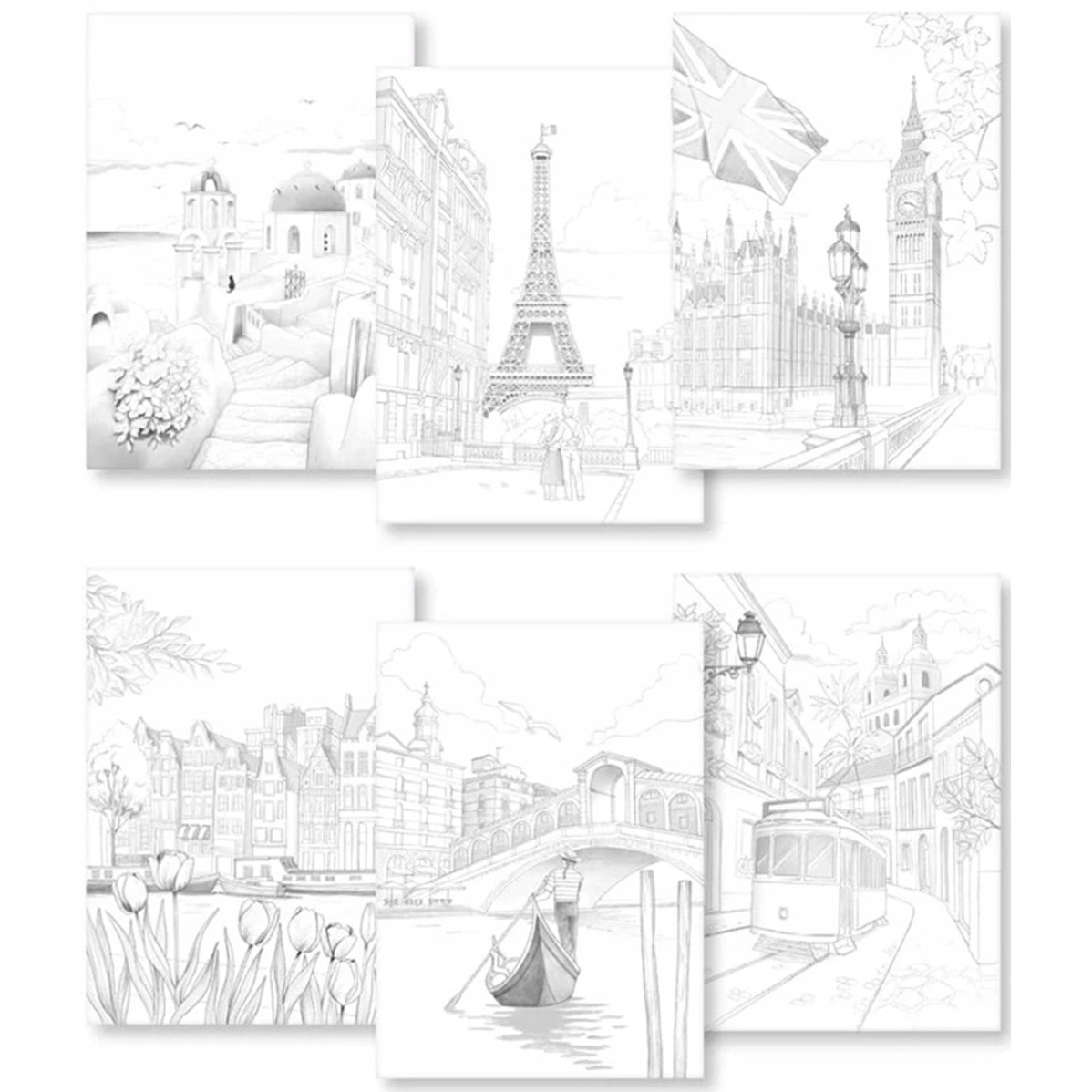 Album ze szkicami do kolorowania Odelia Miasta marki Clairefontaine. 20 arkuszy o gramaturze 250 g/m², 18 szkiców w formacie A4.
