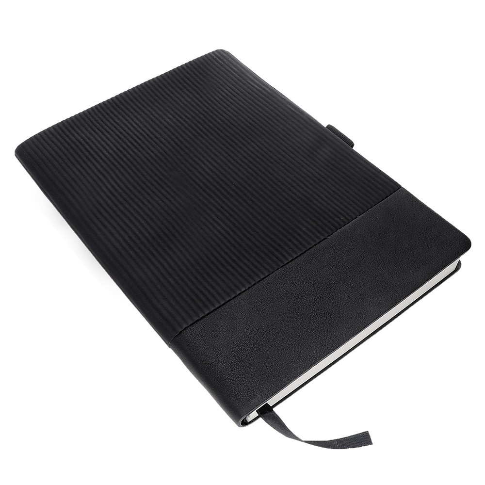 Notatnik z szytym grzbietem do planowania z miękką okładką i miejscem na długopis. Zawartość wewnętrzna składa się łącznie ze 192 stron w formacie A5, z czego 2 strony służą do zapisywania kontaktów i 1 do zapisywania danych osobowych. Integralną częścią notatnika jest zakładka. Gumowana okładka chroni dane przed wilgocią. Długopis nie jest dołączony do zestawu.