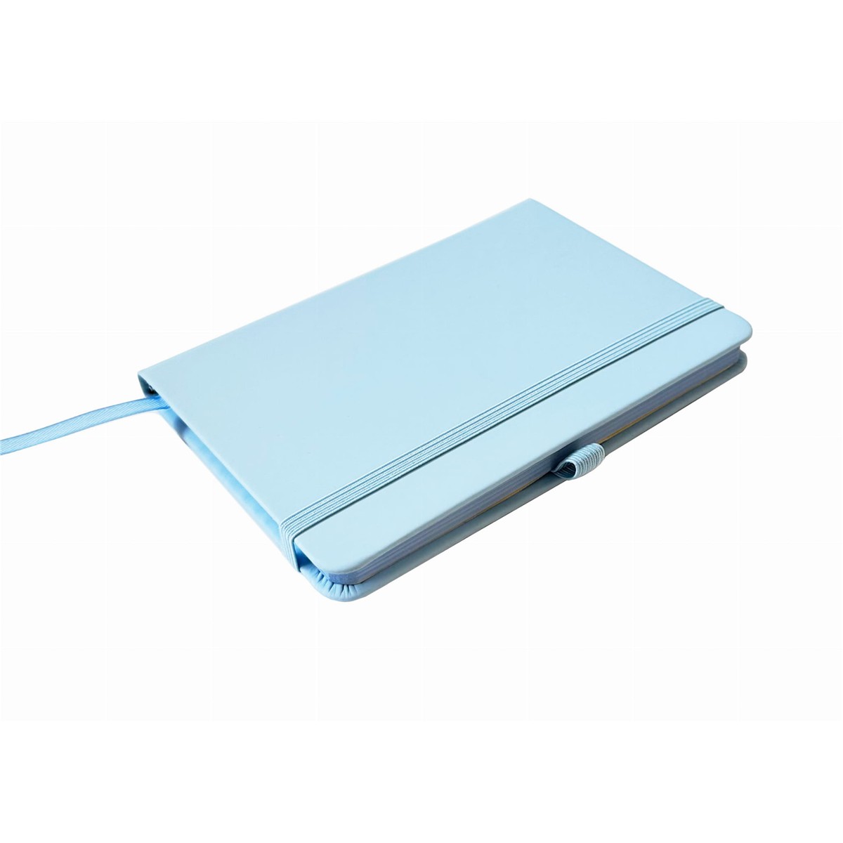 Notes A6 z kolorową gumką wykonany z materiału skóropodobnego (PU).