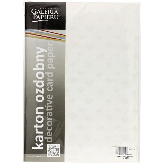 Karton papier ozdobny Serca Galeria Papieru, biel, format A4, opakowanie 20 arkuszy