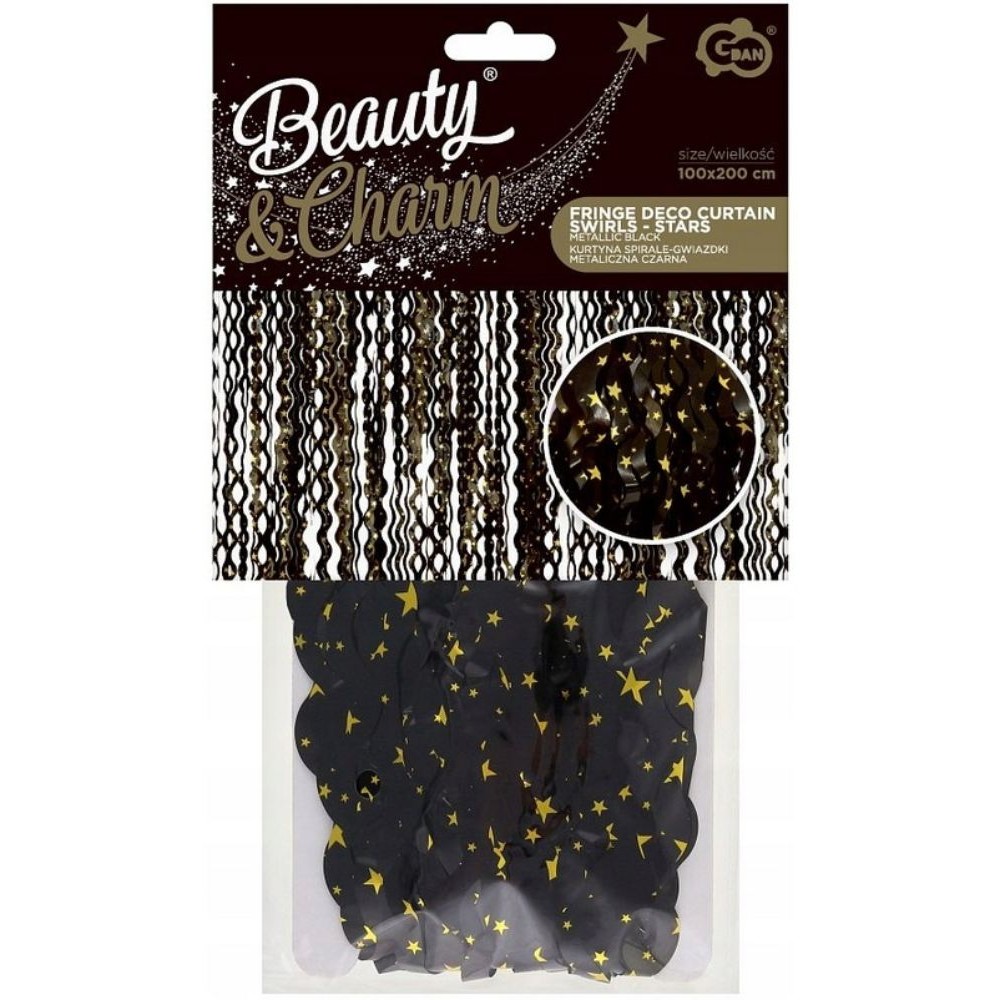Kurtyna czarna spitale srebrne gwiazdki 100x200cm