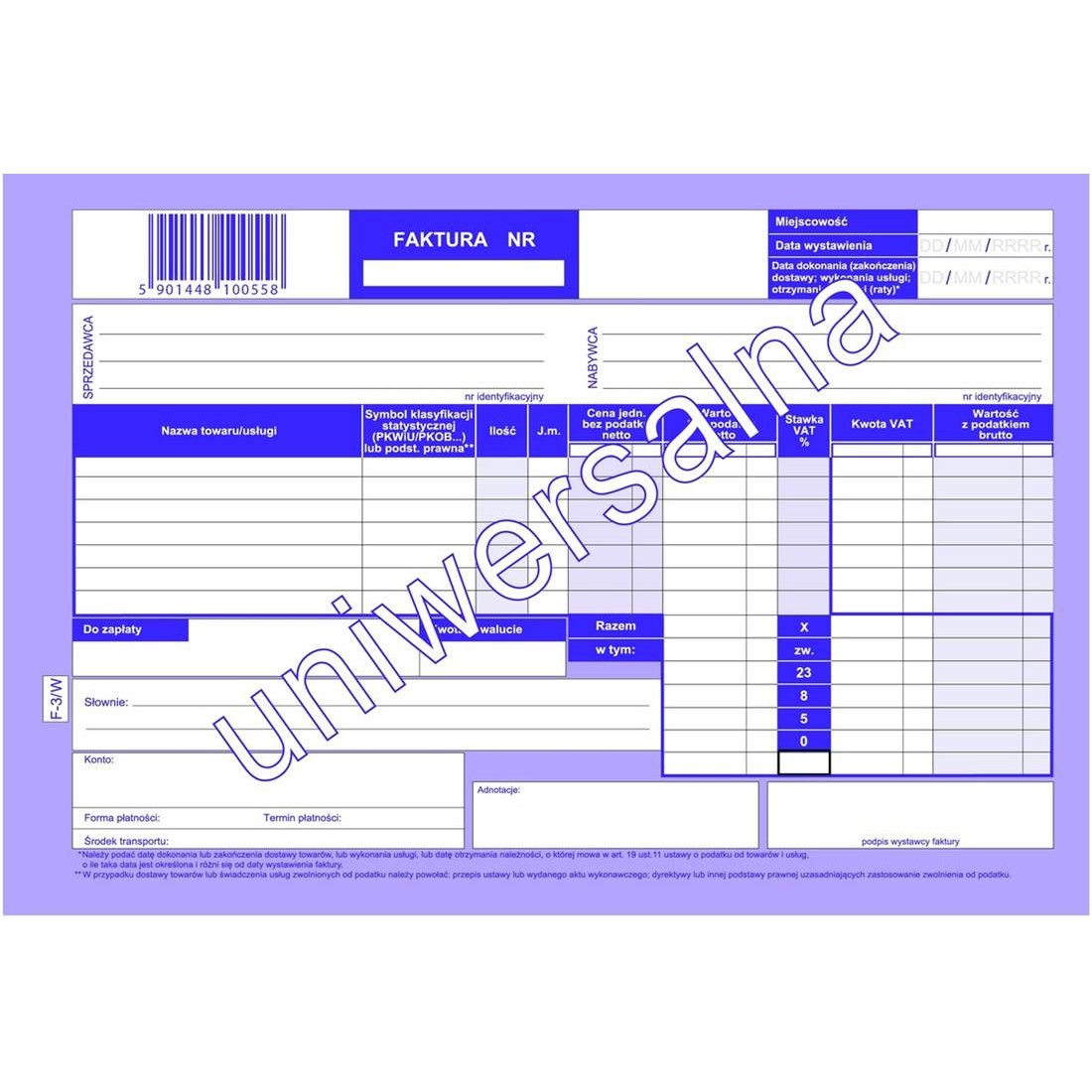 Faktura A5/100sk walutowa\ SIER F-3W-15265