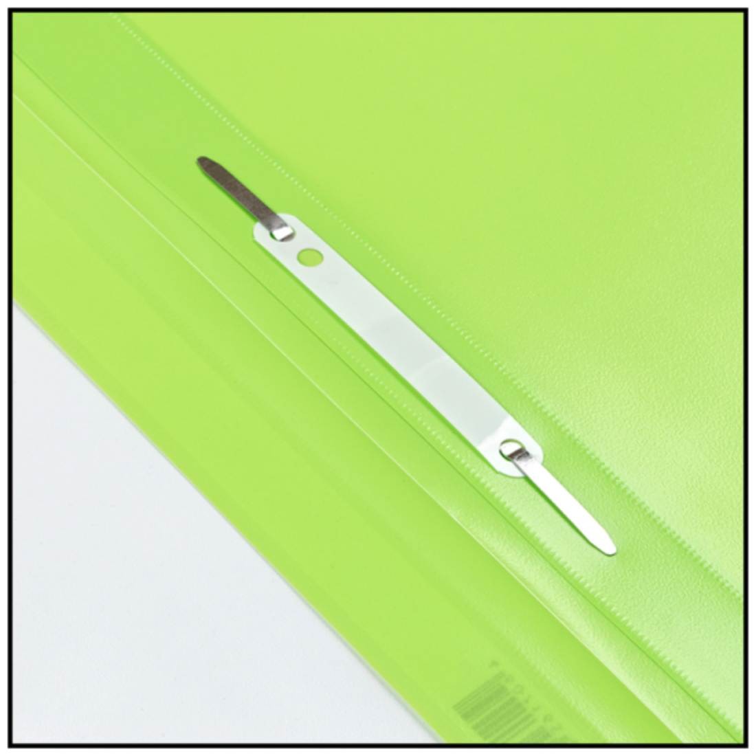 Skoroszyt z przezroczystym górnym arkuszem. Zaprojektowany do przechowywania dowolnych dokumentów w formacie A4. Posiada wzmocniony grzbiet z tworzywa sztucznego z paskiem indeksującym do umieszczania informacji. Format: A4, grubość materiału: 180 μm, pojemność: do 100 arkuszy.
