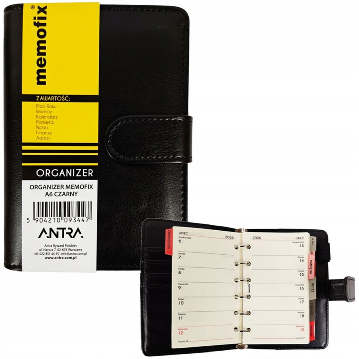Kalendarz-organiz.czarny ANTRA MEMOFIX A6 2026r