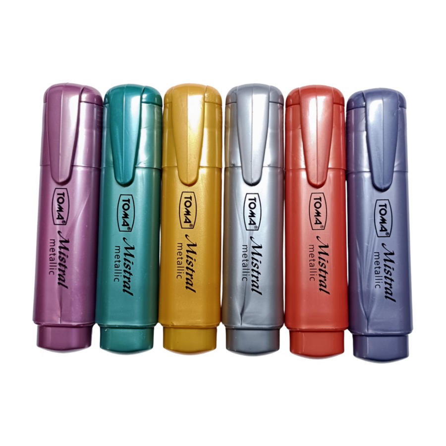 Zakreślacze TOMA komplet 6 kolorów metalicznych