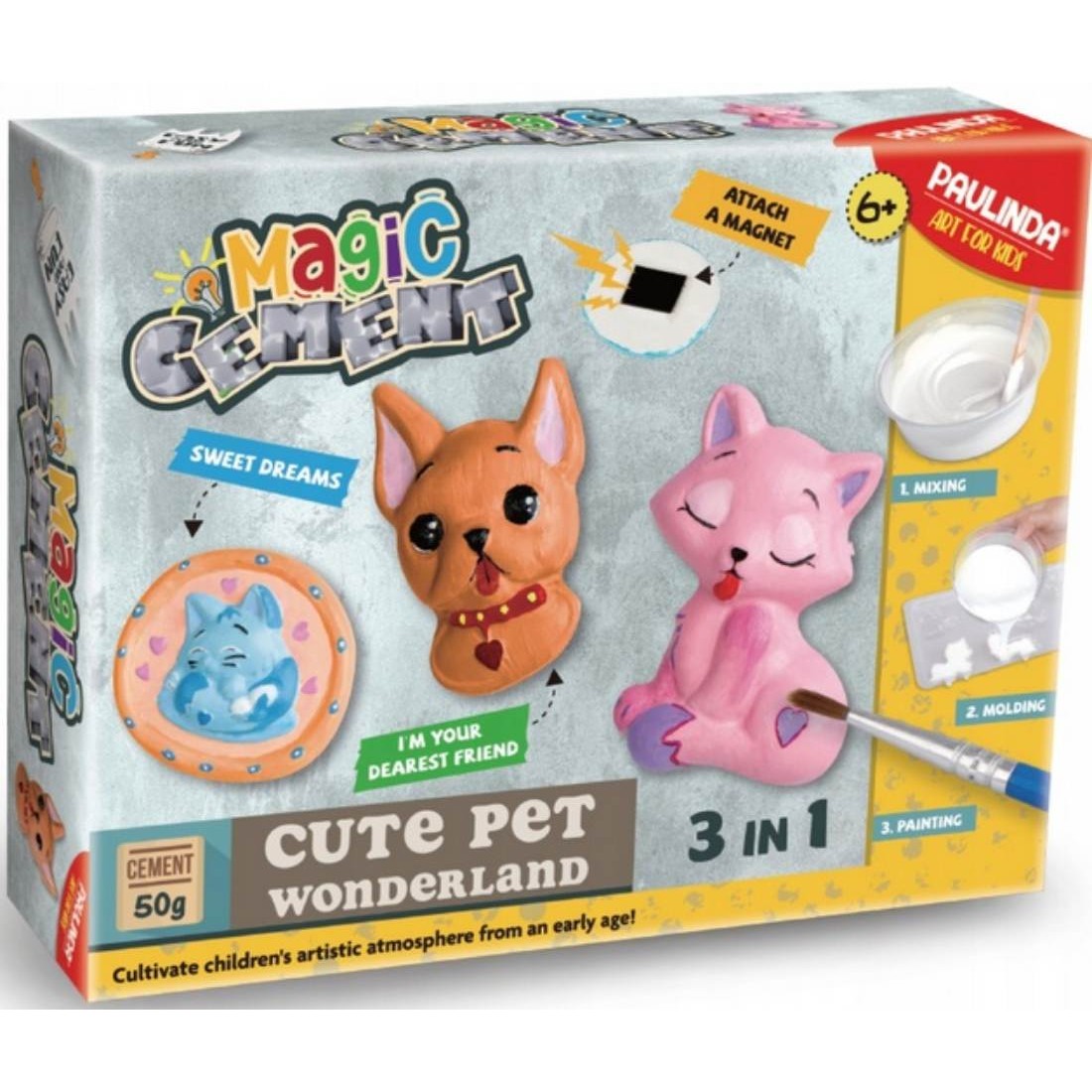 Zestaw Strigo to doskonała kombinacja nauki i kreatywności! Twoje dziecko ma okazję stworzyć figurkę ptaków od podstaw – wystarczy wymieszać magiczny cement z wodą, wlać do foremki i poczekać na wyschnięcie. Kolejny etap to dekorowanie! Zestaw zawiera wszystko, co potrzebne: pigmenty, pędzelek, paletkę i magnes, dzięki któremu figurkę można zamocować na powierzchniach magnetycznych. Idealny sposób na rozwój zmysłu estetycznego i stymulację sensoryczną!