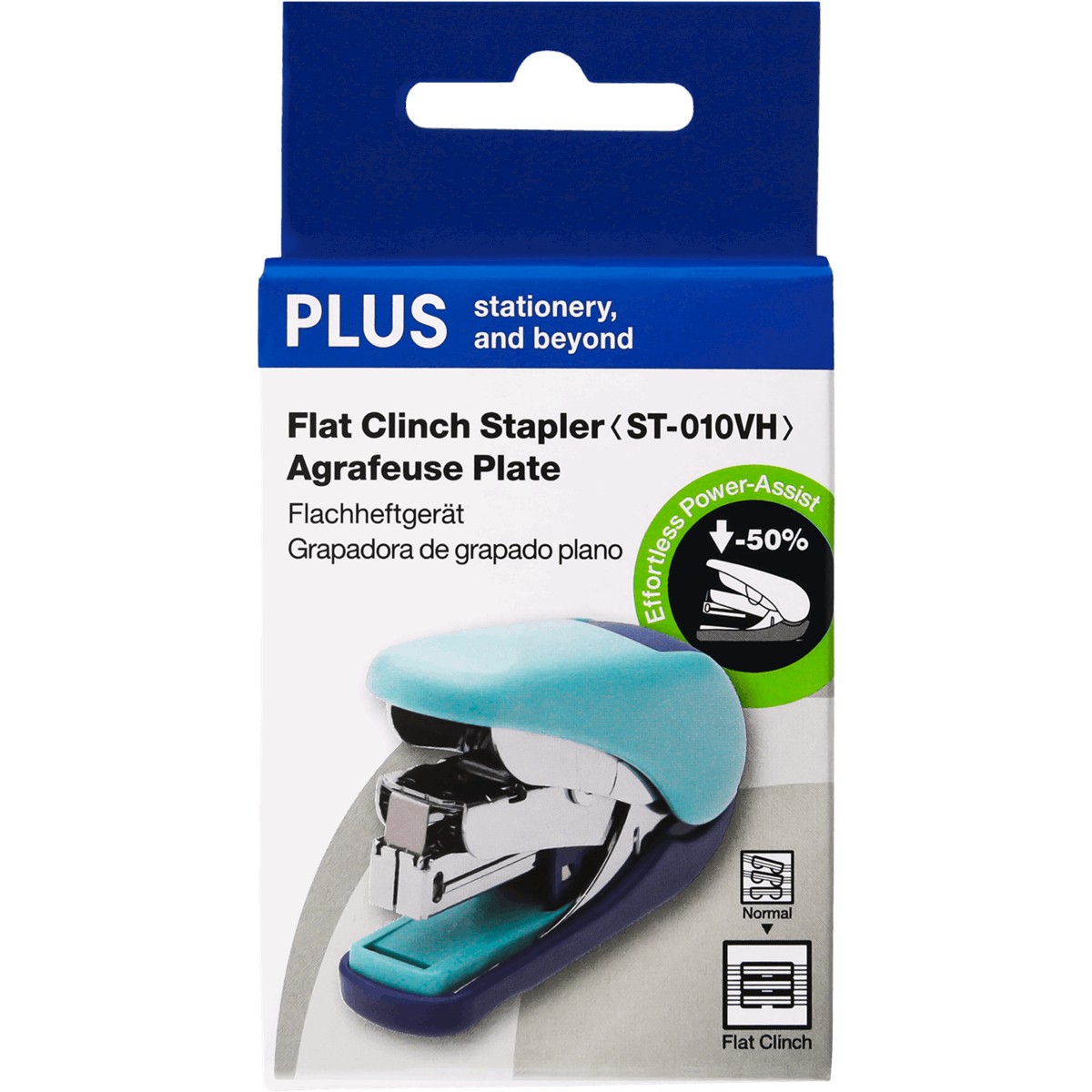 Zszywacz PLUS ST-010VH w kolorze niebieskim pastelowym.
